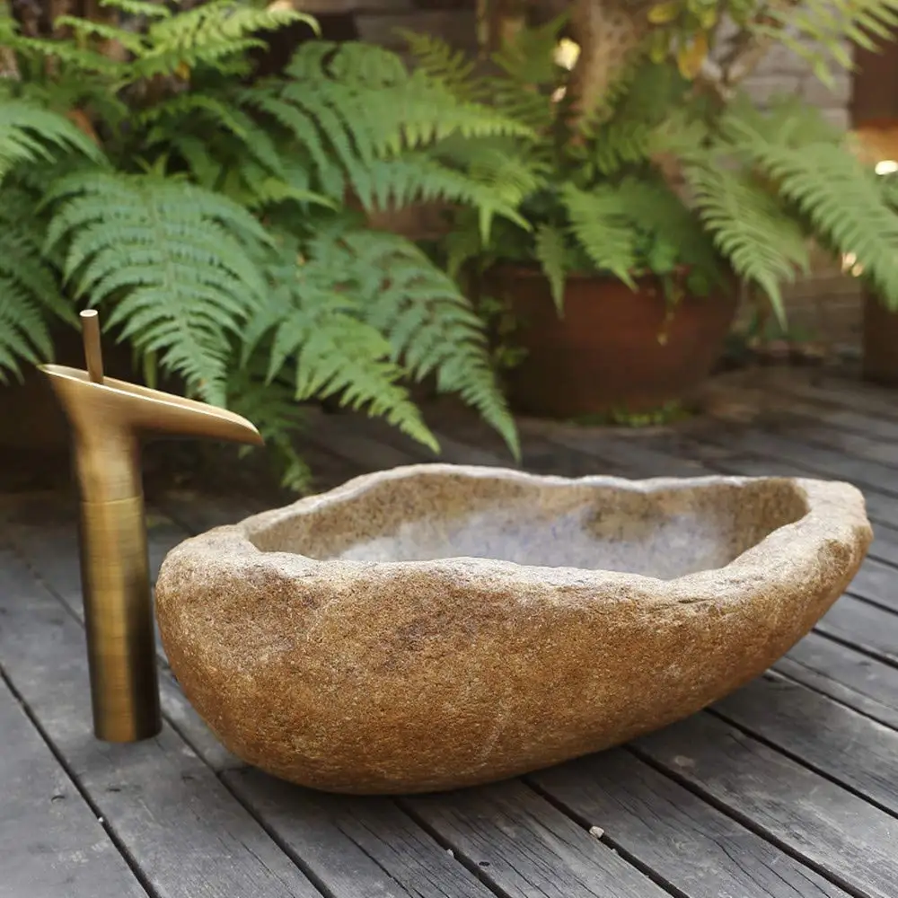 Special Offer Natural Cobblestone Wash Basin Hand Chiseled Bathroom Vessel Sink (Brown) Discount 52% Today!